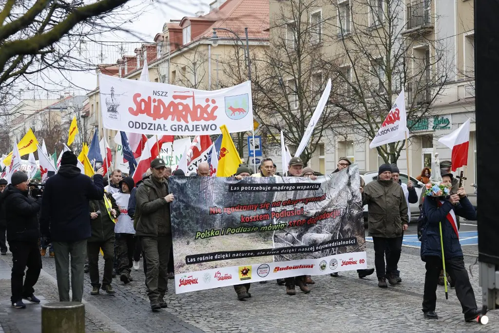 В Белостоке состоялся общепольский протест лесной и деревообрабатывающей отрасли, в котором приняли участие около 1000 человек. Представители отрасли выразили несогласие с политикой правительства и передали 10 требований, выгравированных на фанере, директору Региональной дирекции государственных лесов в Белостоке, сообщает портал KURIER PORANNY.